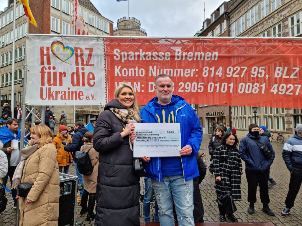 Leider konnten wir den symbolischen Spendenscheck aufgrund des Wetters nicht zum Silvesterlauf Bremen übergeben und haben das gestern auf der Kundgebung zum 1. Jahrestage des russischen Überfalls auf die Ukraine nachholen können!